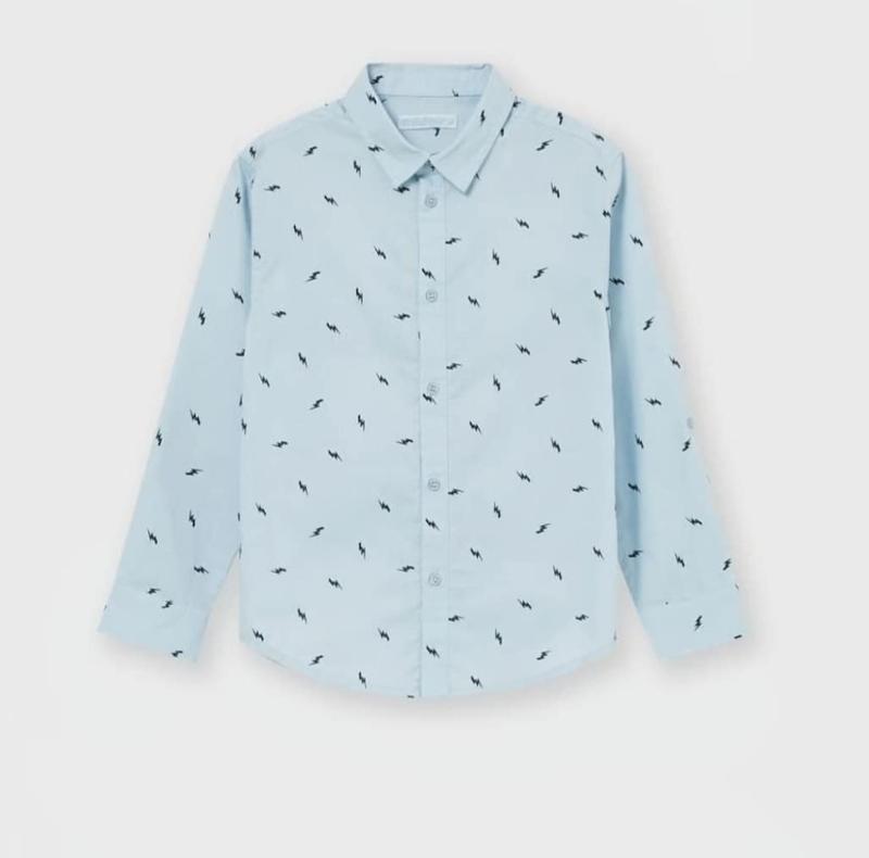сорочка блакитного кольору з котону. розмір 92 см заміри: ширина плечей 25 см напівобхват грудей 29 см довжина рукава від плеча 30 см довжина рукава від пахви 23 см довжина сорочки від плеча 37 см