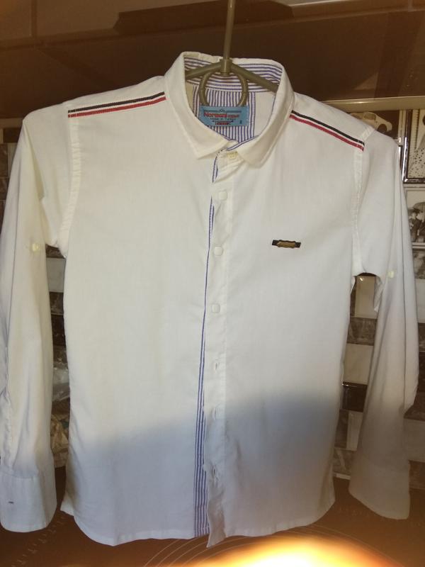 Сорочка для хлопчика 6-7 років, виробництво Туреччина. Вдягали 2 рази, без дефектів, стан нової. Дуже гарна якість, натуральна тканина, не парить. Є можливість підстібнути рукав.