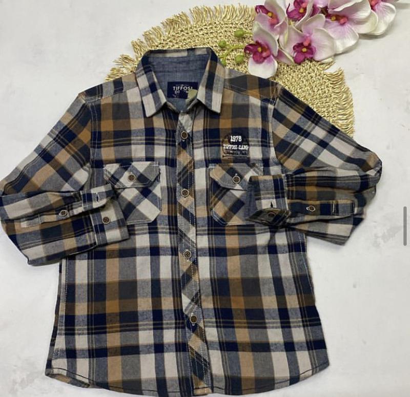 Сорочка для хлопчика. Коричнева клітинка. Зріст 110 см