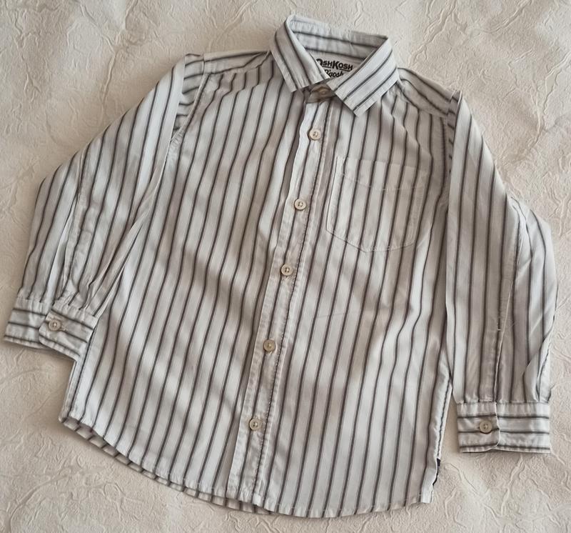 Классическая рубашка в полоску. Длина-47 см, рукав-35 см, плечи-27 см, под руками-37 см.