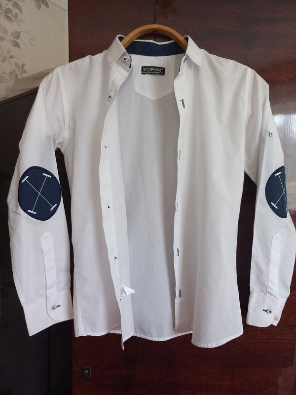 Біла сорочка для хлопчика 152 см зростом з нашивками на ліктях