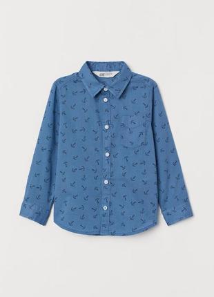 Стильная рубашка с длинным рукавом от производителя качественной одежды H&M. Приятная к телу хлопковая ткань. Состав: 100% хлопок 3-4 Длина от плеча 41 см. Ширина под руками 33 см. Рукав 35 см. Плечи 28 см 4-5 Длина от плеча 42 см. Ширина под руками 33 см. Рукав 37 см. Плечи 28 см