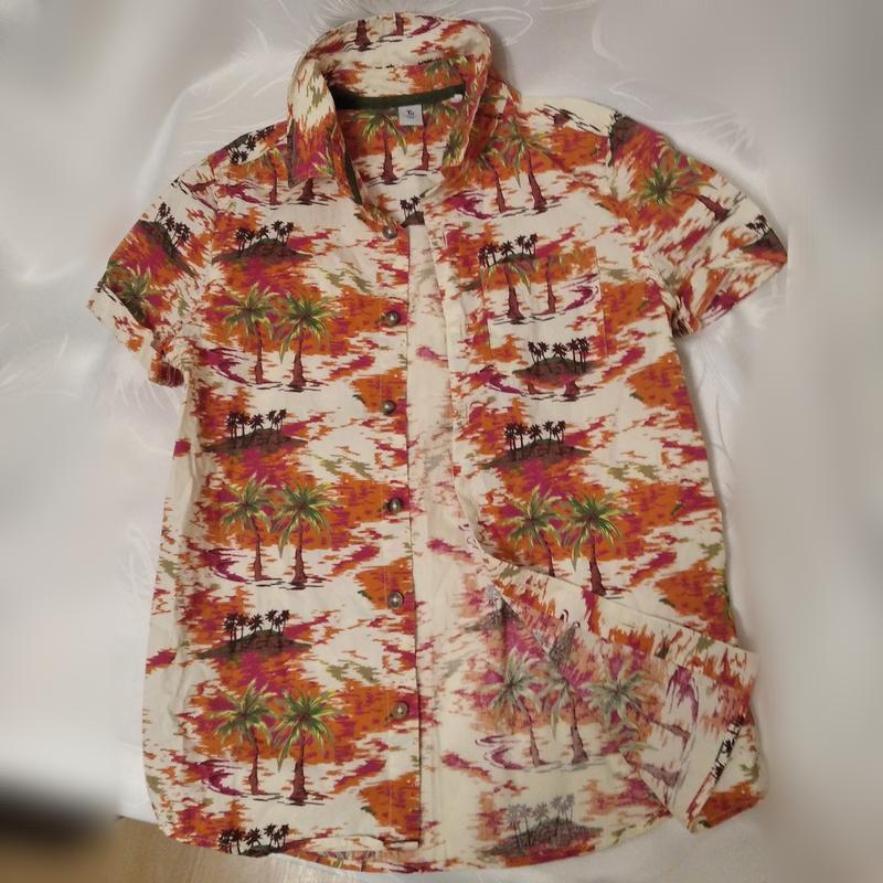 чудова літня котонова сорочка, з пальмовим принтом довжина 58, ширина 40 плечі 33 якісний товар секонд люкс