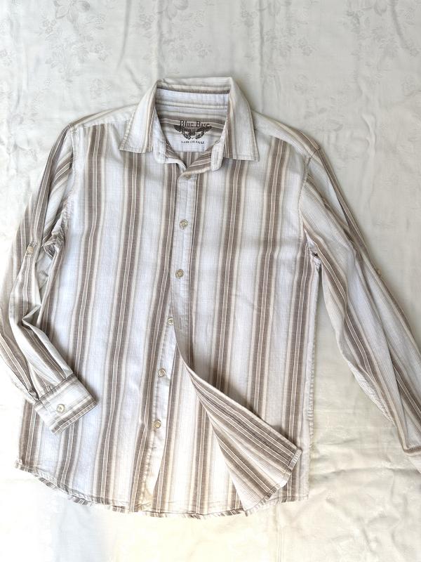 Рубашка для хлопчиків, вік зазначено 10-11рок, 100%котон гарна якість. Заміри: Довжина- 63см плече- 13см рукав- 51см ПОГ- 45см ПОТ- 46см Низ- 46см Від плеча до плеча по спинці- 41см
