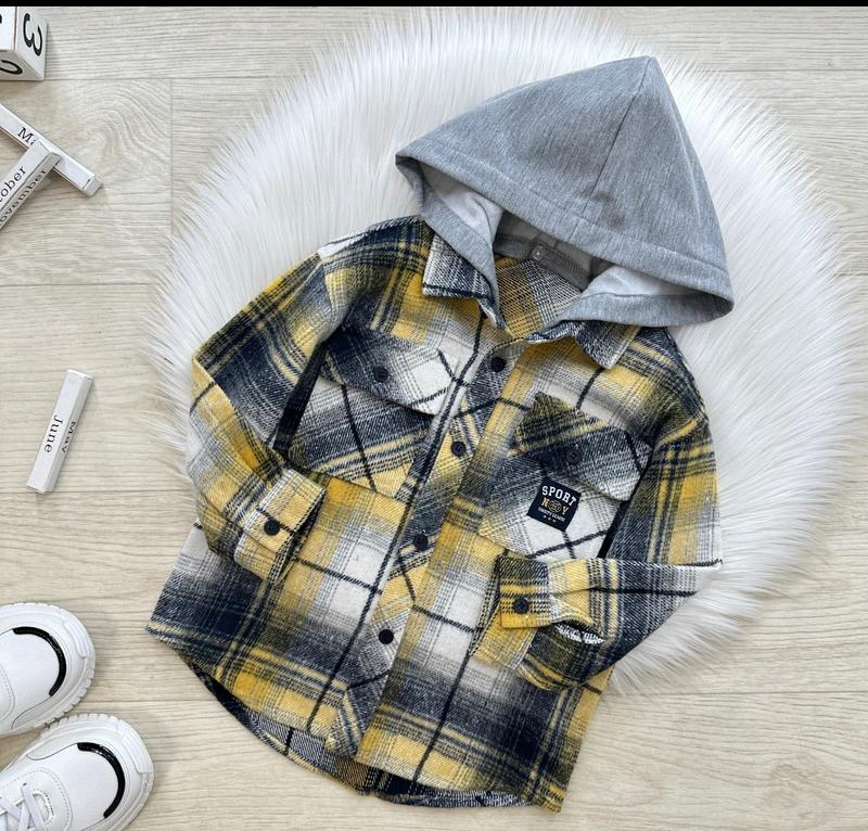 Крутецька тепла сорочка з відстібним капюшоном 😎😎😎 Діючі накладні кишені 🤩 По всій довжині ґудзики 🔘 Мʼяка тканина 😉 Нашивочка 😎 Тканина: твідова байка 🔝 Виробник: S&D 🇪🇺 ЗАМІРИ ⤵ +/- 1-2см!!! ◾р.3/4- довжина від плеча 43см/ рукав від плечового шва 29см/ ПОГ 35см ◾р.4/5- довжина від плеча 46см/ рукав від плечового шва 30см/ ПОГ 38см ◾р.5/6- довжина від плеча 49см/ рукав від плечового шва 31см/ ПОГ 39см ◾р.6/7- довжина від плеча 51см/ рукав від плечового шва 34см/ ПОГ 40см ◾р.7/8- довжина від плеча 53см/ рукав від плечового шва 37см/ ПОГ 41см