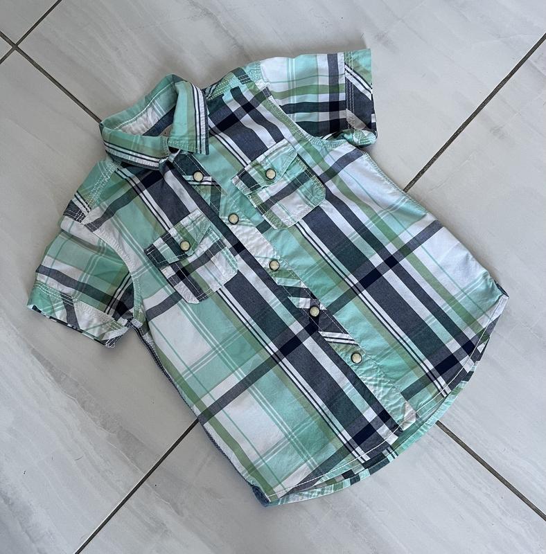 Продам стильну сорочкуH&M на хлопчика 3-4 років, зріст 104 см. Дуже гарна якість, 100% бавовна. Стан нормальний, є декілька ледве помітних плям, які відмічені на фото. Є багато дитячого одягу та взуття, дивіться інші мої оголошення.