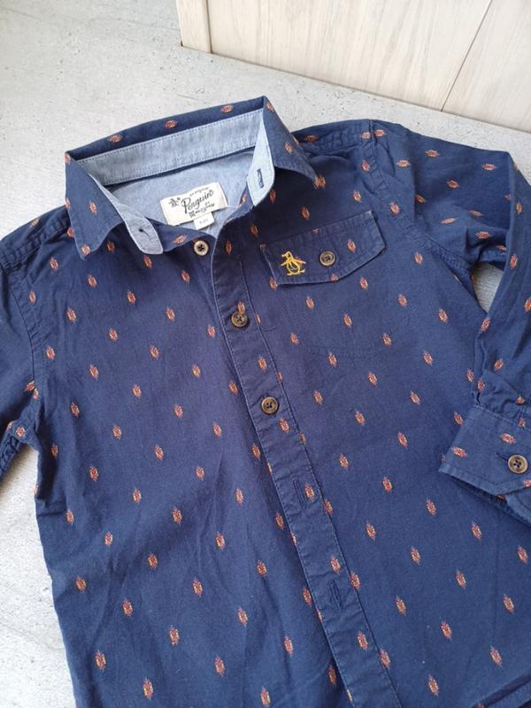 Дуже симпатична сорочка, в ідеальному стані, на зріст 98-104 см. Заміри: довжина по спині 41-42 Ширина плеч 28 Ширина під пахвами 33 довжина рукава від плеч 34 рукав від пахв 27