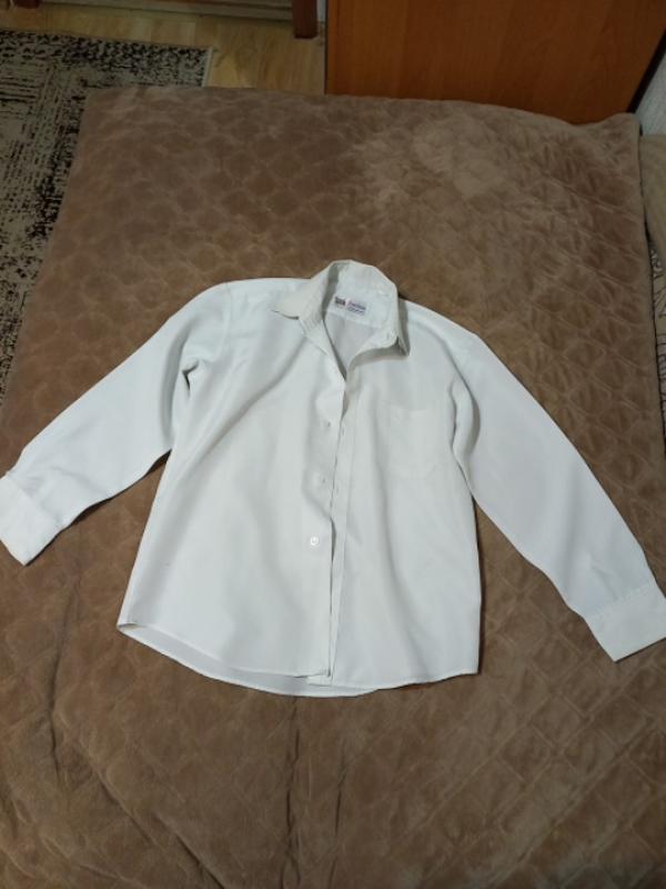 Сорочка на хлопчика, біла, святкова, довжина рукава 44см, комірець 34см, ширина плечей 38см, длвжина виробу 54 см, є непомітна тоненька затяжка на спині- див. на фото.