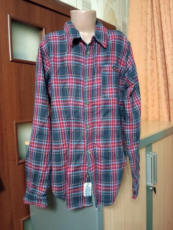 Комфортная утепленная хлопковая рубашка с длинным рукавом на парня 12-13 лет Рост 158 см Бренд FATFACE Состав материала 100% хлопок. Очень мягкая и приятная к телу Двойной слой ткани, можно в теплую погоду, как ветровочку Замеры: длина изделия от плеча по спинке - 65 см ПОГ(под рукавами)- 44 см длина рукава от шва- 59 см длина рукава от ворота - 70 см можно укоротить, есть хлястик плечи - 38 см Состояние идеальное, без замечаний