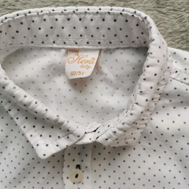 Святкова, нарядна класична рубашечка в горошок. Стан дуже добрий. Єдиний нюанс невелички жовтеньки плямки на парвомц плечику та передплечику, нема уяви звідки, можливо відіпреться, носили обережно. Розмір 110. Заміри : Плечі 26см Ширина 31,5 см Довжина 38см Рукавчик 33,5/26 см +робиться коротким