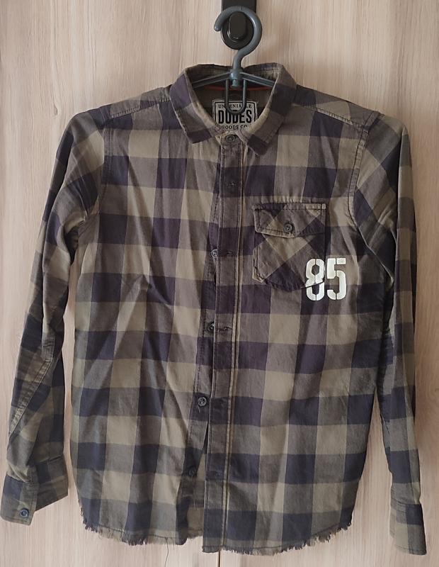 Детская рубашка в клетку для 10 лет Плечи по спине 34 см Полу обхват груди 43 см Рукав 50 см Длина от горловины 56 см Состояние идеальных дефектов нет
