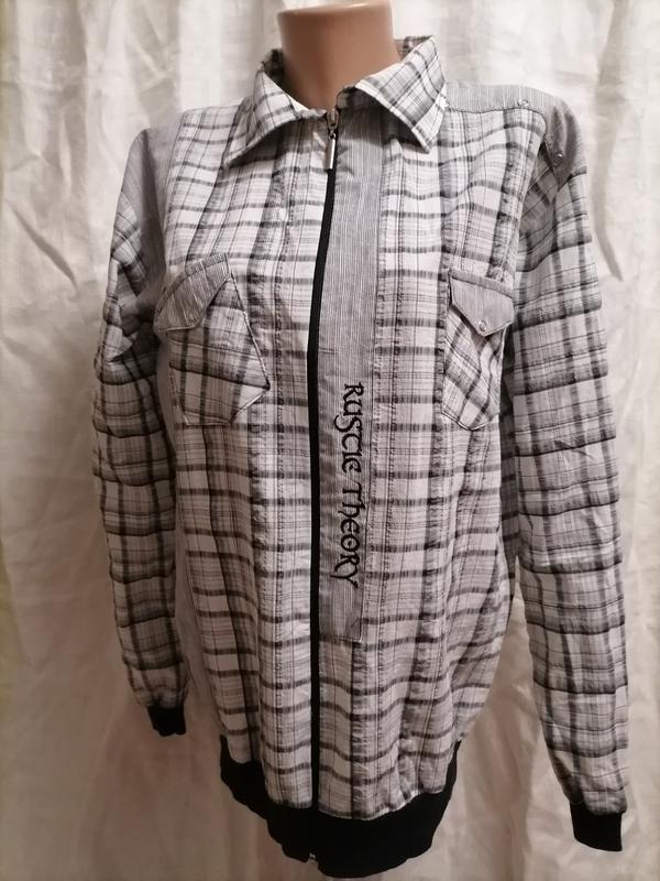распродаж 2 вещи приобретаете подарок красивая тоненькая рубашка с длинными рукавами, манжеты и низ -трикотажная резинка застегивается на молнию. можно носить как жакетик поверх водолазки, на подростка, ориентируйтесь по мерочкам Размер указанный XL плечо - 16 см; рукав - 57 см, длина - 65 см; ПОГ - 50 см; ПІТ - 42 см; спинка - 46 см . Купите то что на фото, без претензий. Перед покупкой все хорошо замеряйте, возврат и обмену нет. Доставка НП и УП после оплаты на карточку,