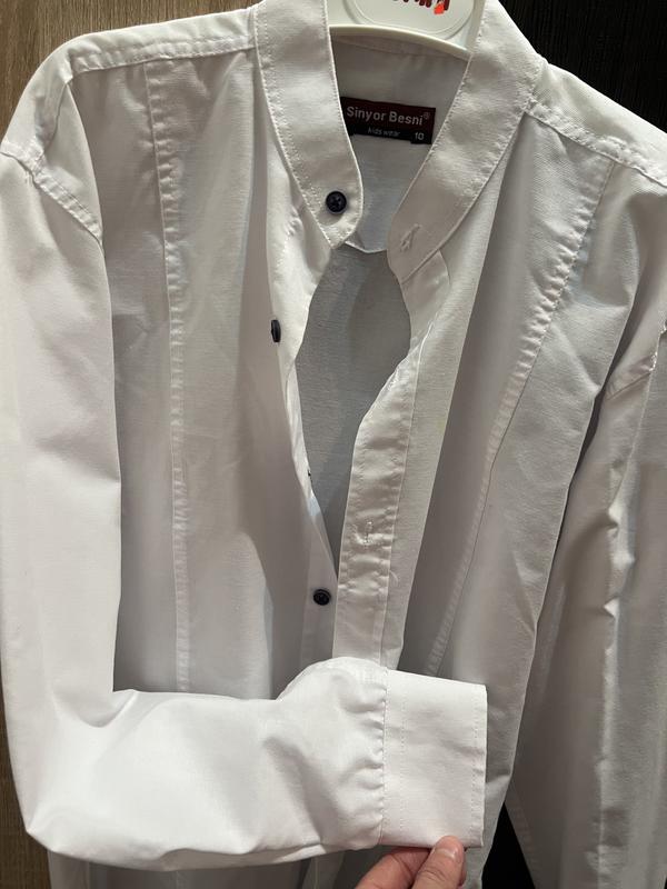 Гарна лляна сорочка хорошої якості .Є пляшка виводити не пробувала була одягнена 1раз до Причастя вік 8-10років більше недоліків не має ,окрім пляшки.