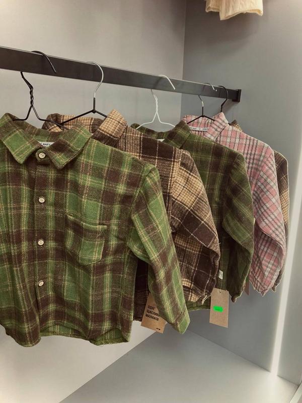 Теплі сорочки для стильних малюків 🍂👕 Ідеальний вибір для прогулянок у прохолодну погоду! М’яка, приємна до тіла тканина, трендові клітинки та натуральні відтінки — зелений, коричневий, бежевий і ніжно-рожевий.