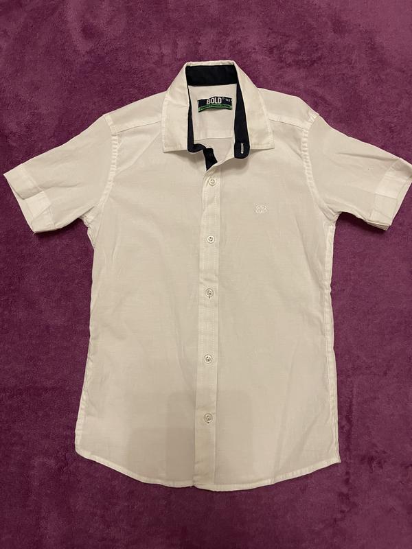Біла рубашка теніска, розмір 122 см. В ідеальному стані, без плям. Заміри є на фото.