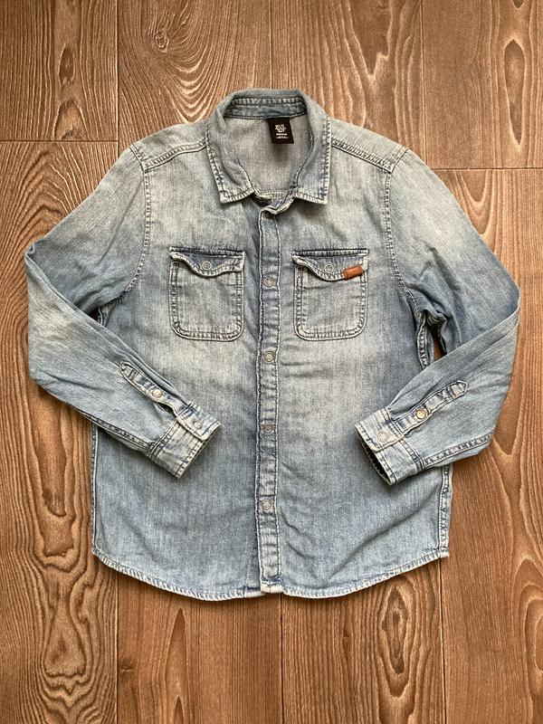 Джинсова сорочка для хлопчика 5-6-7 років H&M з довгим рукавом Вживана Ширина грудей - 37,5 Ширина між плечовими точками - 29 Довжина від основи шиї до низу спереду - 51 Довжина посередині спинки - 50 Довжина рукава - 43,5 Дивіться також інші мої оголошення