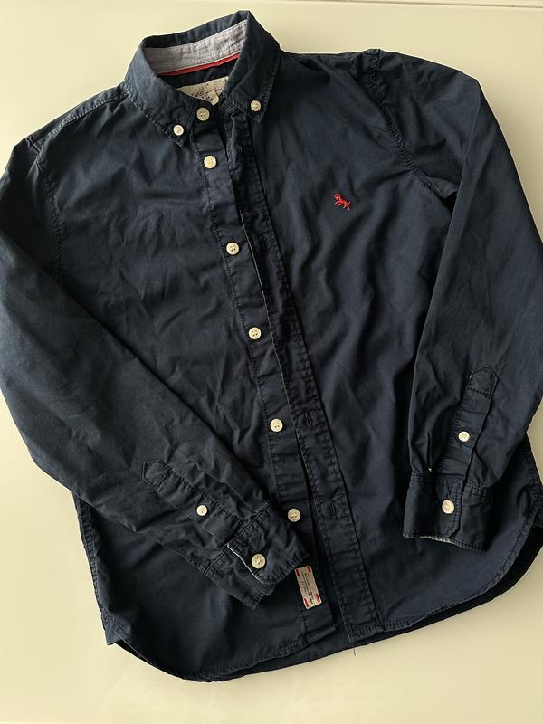 сорочка з колекції L.O.G.G. (Label of Graded Goods) від H&M 👕 Розмір на хлопчика 9–10 років (US 9–10Y, EUR 140/146, CN 140/68). 🔹 Темно-синя (navy) сорочка з довгим рукавом. 🔹 Класичний крій з комірцем на ґудзиках. 🔹 Спереду застібається на ґудзики. 🔹 Є маленький вишитий логотип-червона собачка зліва на грудях. 🔹 Склад тканини — здебільшого бавовна (зручна для щоденного носіння). Підійде як для повсякденного образу, так і для школи чи більш святкового випадку