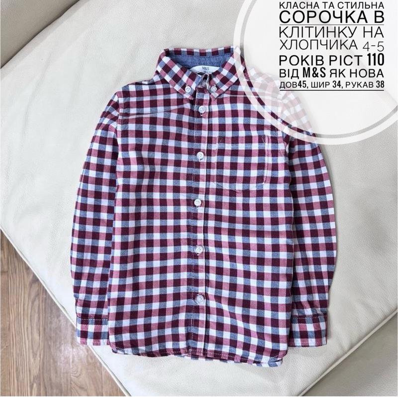 Класна та стильна сорочка в клітинку на хлопчика 4-5 років ріст 110 від m&s як нова дов45,...