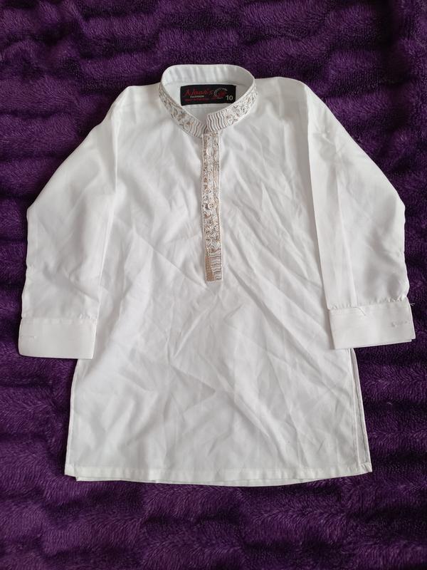 Біленька, стильна,, в ідеальному стані курта на хлопчика 2-3років. Довжина 47 см, рукав 31 см. пог 31 см. Є така ж курта на 5-6 років. Дивіться також схожі мої обяви