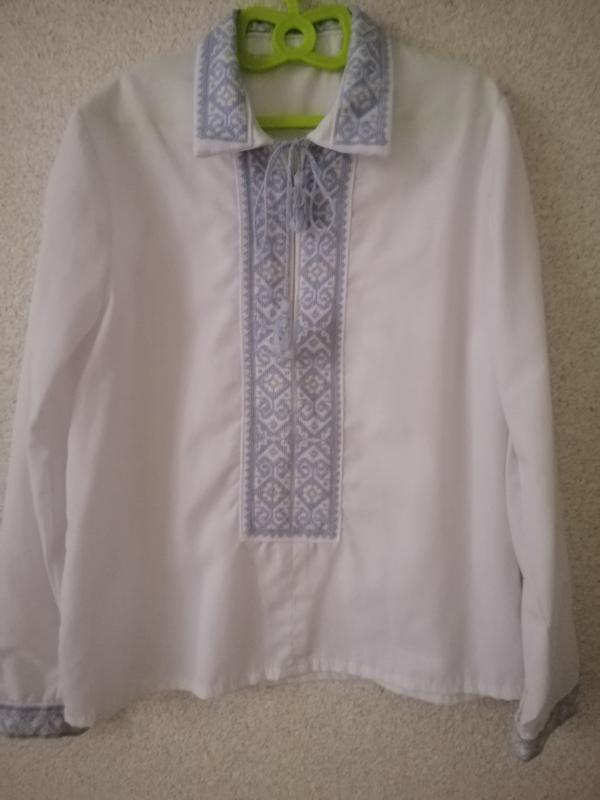 Ручна вишивка. Нашита на сорочку. Довжина 46 Плечі 30 Рукав 45 з манжетом Ширина 37 Матеріал поплін. На замку.