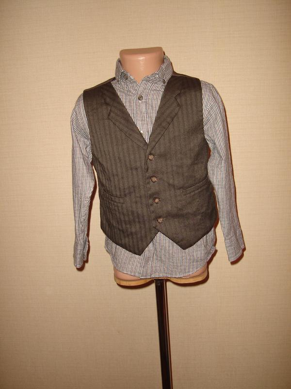 Комплект -сорочка (тонка байкова) і жилетка на 6 років виміри сорочка 46 см довжина, ширина 35, рукав від плеча 38, плече 9, між плечима 30 жилетка довжина 41, ширина 35 в ідеалі