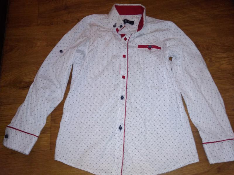 Сорочка на 10-11 років , стан ідеальний . Зверху на кнопках , 2 нижні гудзики. Заміри: довжина по центру 55, збоку по стегнах 48, ПОГ 37, рукав від шва 45.