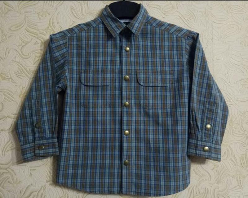 Сорочка на 3-4 роки,в актуальну клітинку, оливкового кольору, застібається на кнопки, кишені на грудях на липучках.Реальний колір фото 3. Склад: котон. Виміри: плечі 32 см.; рукав 31 см.; об.грудей 37 см.; довж.виробу 43 см. Перешлю після 100% оплати на картку. Відправлю Новою або Укр.поштою. За додатковою інформацією звертайтеся.