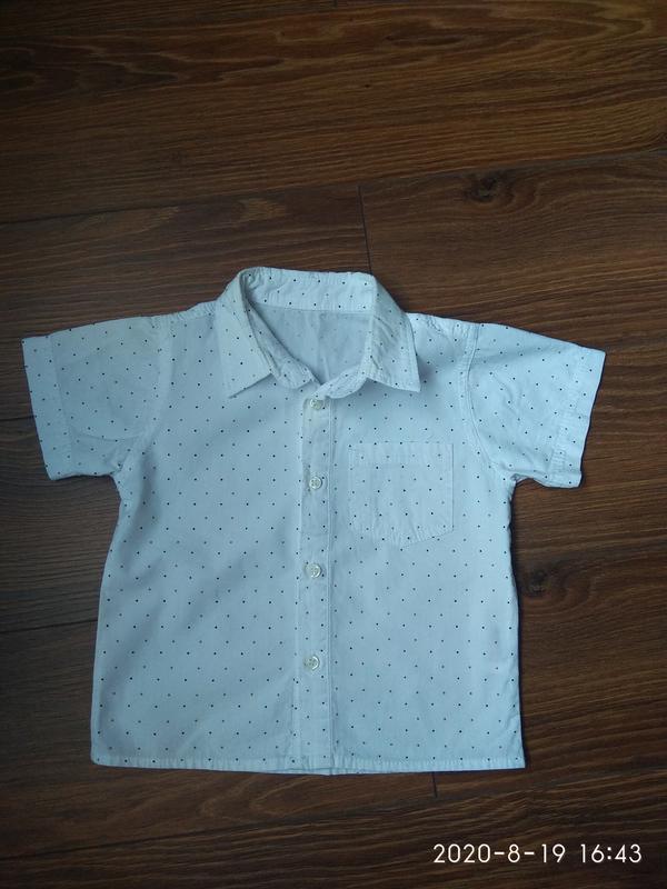 Біла сорочка в горошок. Розмір 92.