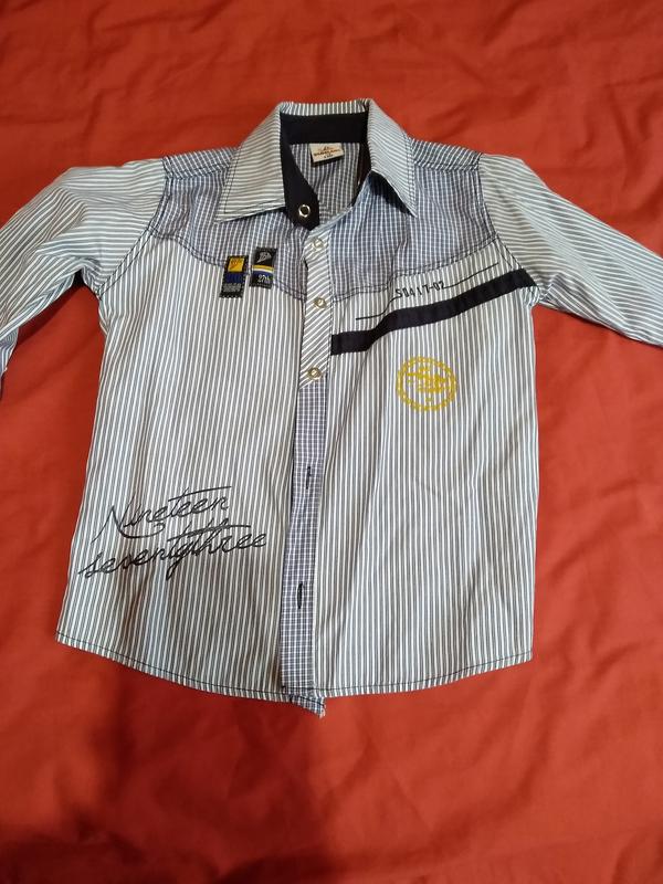 продам стильну сорочку на хлопчика, у відмінному стані , можна носити з брюками і джинсами, синя в смужку, можна в школу і на вихід. одягнена пару разів.