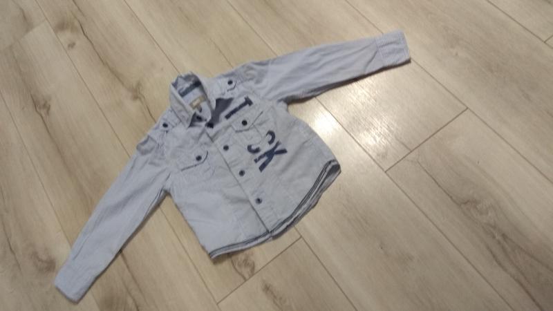 крута сорочка малюкові, підійде на 1.5-2 роки+ стан нової речі! класно виглядає і під штани і під джинси, біло - синя смужка, фото реального кольору не передає. довжина 37 см, ширина-31 см