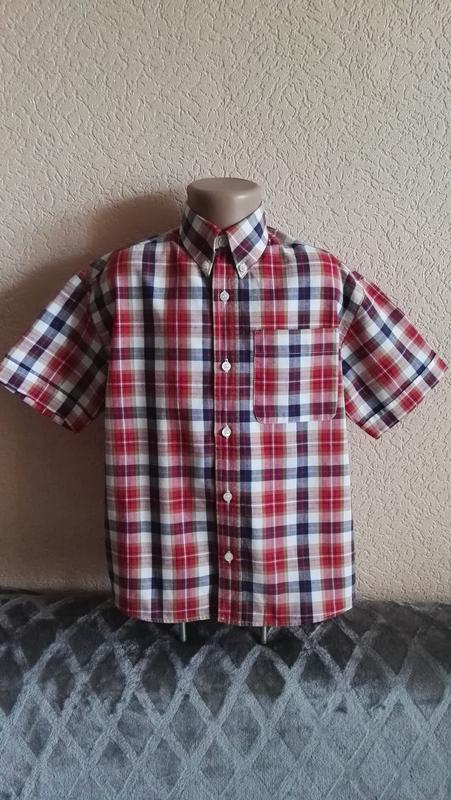 Сорочка теніска для хлопчика 100% бавовна 7-10років,ріст 128-140см від Marks&Spencer. Фірмова,натуальная тканина відмінної якості,дуже красива забарвлення. На грудях накладна кишеня,на рукавах манжети. Низ сорочки півколом. Сорочка не маломерит,швидше навпаки. Підійде для хлопчика до 10 років. Стан абсолютно нове. Заміри: ширина в плечах-41,5 см Довжина рукава від плеча-17см. Пог-46,5 см. Ширина по низу сорочки-47,5 см Довжина по спинці,без урахування коміра-57см. Без торгу.