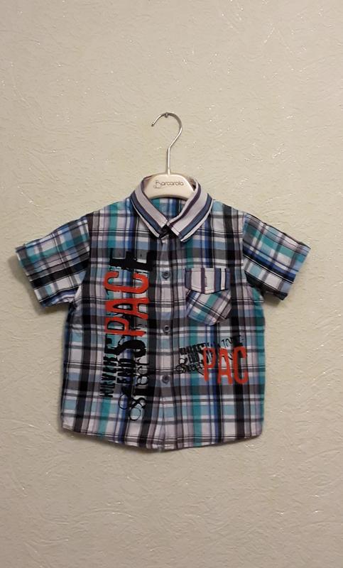 Розмір:86 см-92 см Сорочка для хлопчика. Довжина по спинці 40 см. Довжина рукава від коміра 22 см. довжина рукава від плеча 13.5 см .Ширина під пахвами 32 див. Склад 100 % бавовна.