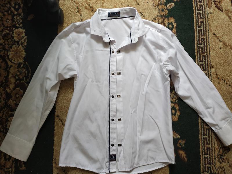 біла сорочка як нова ,зазначений ріст 140,ми носили в 8-9 років,рукав можна носити 3/4, заміри: Довжина 54 Рукав 47 Плечі 36 Пог40