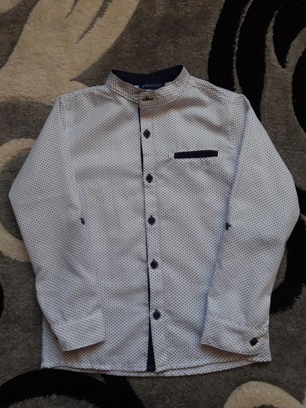 Рубашка в идеальном состоянии, можно подворачивать рукав. По бирке на рост 116, но на 128 тоже подходит ( при необходимости дам замеры)