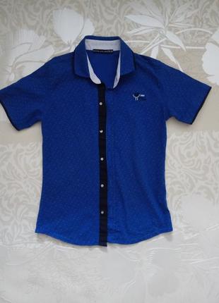 Яскрава, стильна сорочка на зріст 126-134, стан ідеальний. Котон+ лайкра. ПОГ-35 см, довжина - 53 див.