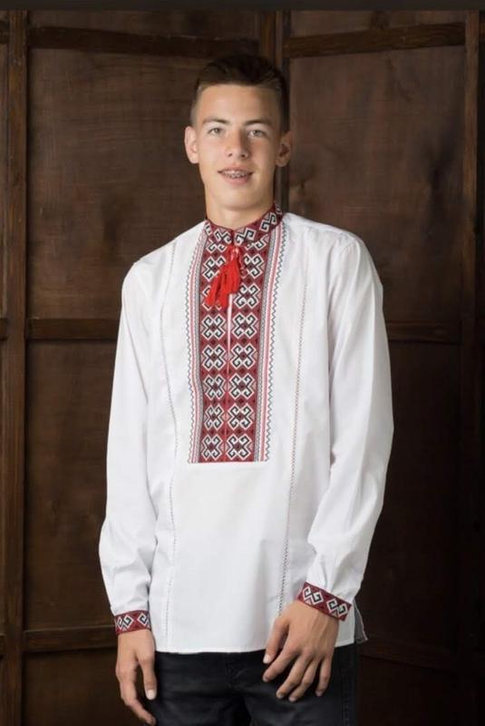 Сорочка для хлопчика-підлітка з сорочкової тканини, довгий рукав, вишивка на манжеті і на грудях, горловина на шнурочку Розміри: 36 - 45 по коміру 42-60 за розміром Ціна: 550 грн.