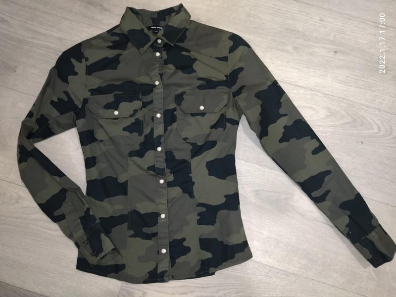 Продам сорочку Миллитари. Tally Weijl. за бирки розмір xxs, 150/72/А заміри: довжина 58 см, ширина під пахвами 37см, ширина талії 35см рукав від плеча 58 см плечі 11 см нова.
