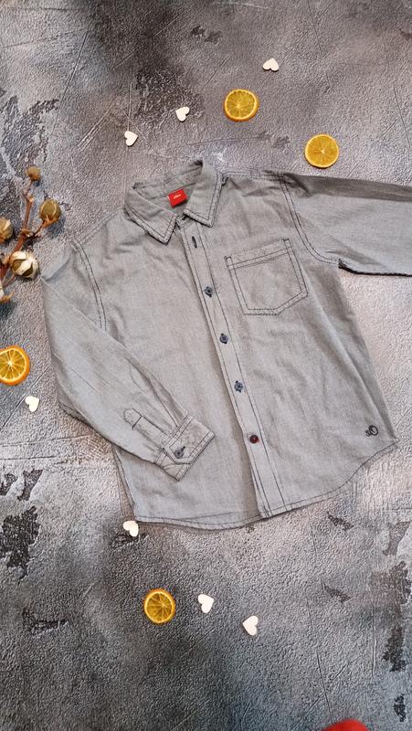 стильная рубашка s. Oliver в отличном состоянии, серая в мелкую клеточку р. 122 см на 6-7 лет