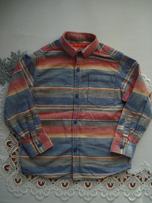 Сорочка на хлопчика Next на 5 років тканину, йде як джинс. Довжина 46,ширина під ручками 37, рукав-37. Стан відмінний.