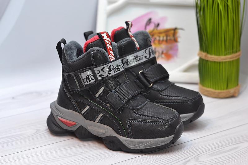 Мега крутые ботинки для мальчиков. Красивое сочетание цветов. Верх - качественная экокожа. Внутри утеплены плюшем. Стелька плюш. Фиксация липучками, сбоку на замочке. 28 размер -18 см Цена 560 грн