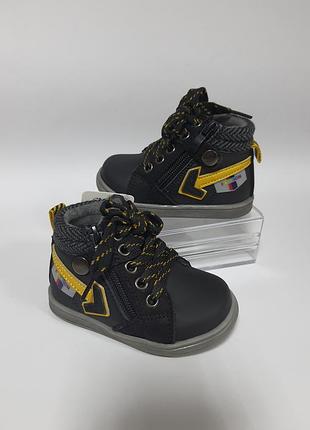 Верх - штучна шкіра, утеплені флісом, устілка шкіряна з сіпинатором фіксація шнуровка, застібка- блискавка, підошва гнучка гума. 20р - 12,5см 21р - 13,4см 22р - 14см - 2 23р - 14,5см - 2 24р - 15см 25р - 16см