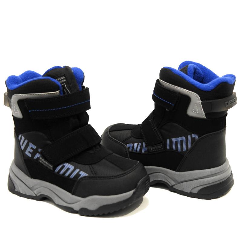 Черевики зимові TOM.M , чорний-синій Матеріал зовнішній - еко-шкіра, водонепроникний текстиль/ Світловідбиваючі елементи. Зручні дві липучки. Розмірна сітка: 28р. по устілці 18,5 см 29р. по устілці 19,0 см 30р. по устілці 19,5 см 31р. по устілці 20,0 см 32р. по устілці 20,5 см 33р. по устілці 21,5 см