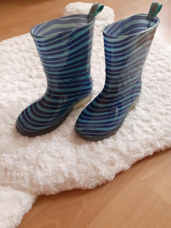 Стан дуже хороший, підійдуть як хлопчикам так і дівчаткам, мінімальний знос по підошві, ззаді мають світловідбивачі, підошва прозора, при ходьбі підмигує зеленим кольором. Є устілки, які виймаюся довжина 17, 8 см. Висота чобітків разом з каблуком 17, 5 см, каблук 2 см.