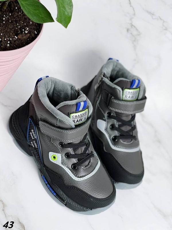 💕🌺💕НОВИНКА💕🌺💕НОВИНКА💕🌺💕НОВИНКА 💕🌺💕 Код 43 Черевики Матеріал еко-шкіра Всередині фліс Колір сірий + чорний На блискавці + шнурівка Висота від п'яти 7,5 см Висота підошви спереду 1,5 см Висота підошви ззаду 3 см Розмірна сітка: 27 - 16,5 см 28 - 17,0 см 29 - 17,5 см 30 - 18,0 см 31 - 19,0 см 32 - 19,5 см