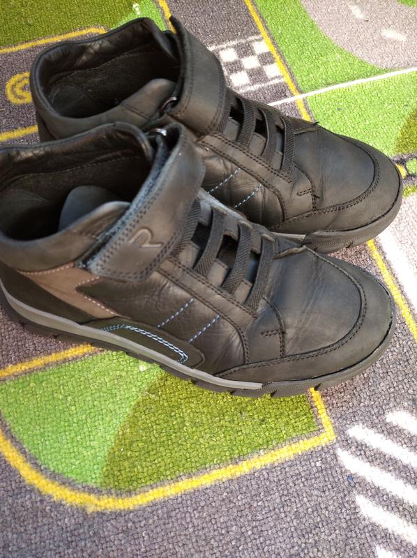 Осінні шкіряні напівчеревики для хлопчика. Утеплені. Загалом стан дуже хороший. Із нюансів - треба приклеїти спереду. По устілці 22.5 см.