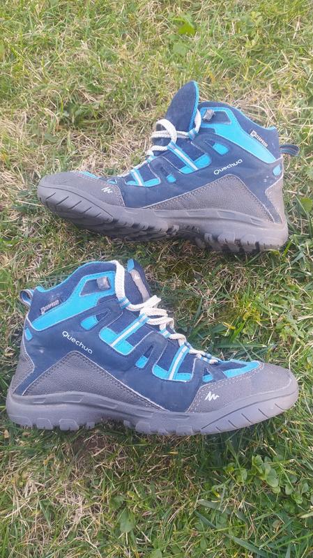 Черевики на хлопчика. Французька фірма Quechua. Розмір 36, довжина устілки - 23 см. На осінь і теплу зиму. Дуже якісні, протектор підошви сертифіковано. Черевики мають систему Waterproof, тобто водонепроникні. Син був дуже задоволений ними, тому рекомендую.
