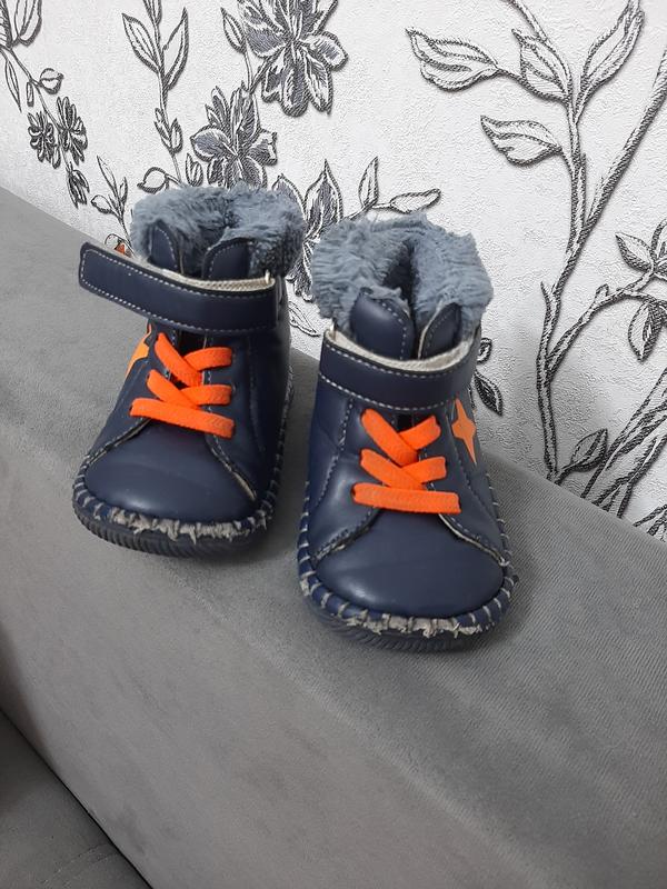 Демісезонні черевики-пінетки, м'якенька підошва, дуже зручні для перших кроків. Зручно одягати. Стелька 13 см.