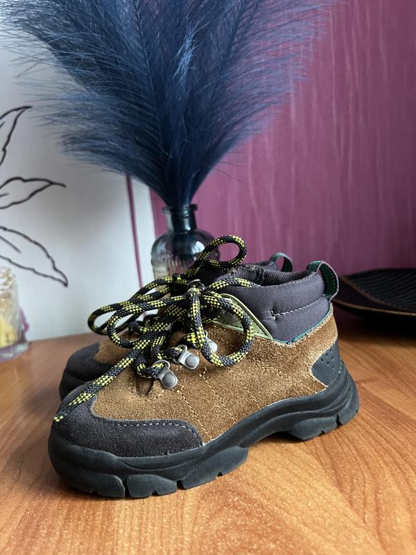 Стан 👍! Дуже легкі! Натуральна замша, замочок і шнурівка! На стопу 14-14,5 Устілка 15.2. Після 1 дитини, з оф сайта Нові такі продають по 1700 на шафі! Легко рухатись у них! Стильні дуже