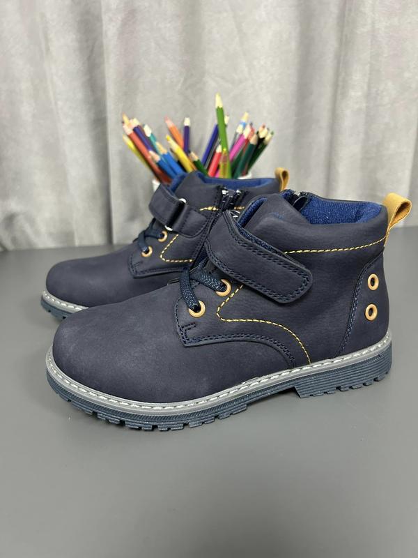 Ботіночки утеплені текстилем, на липучках зі шнурівкою та замочку 27-18,5; 28-19; 29-19,8; 30-20,3; 31-21 см устілка шкіряна із супінатором, можливе відхилення до +-2мм. Розміри запитуйте.