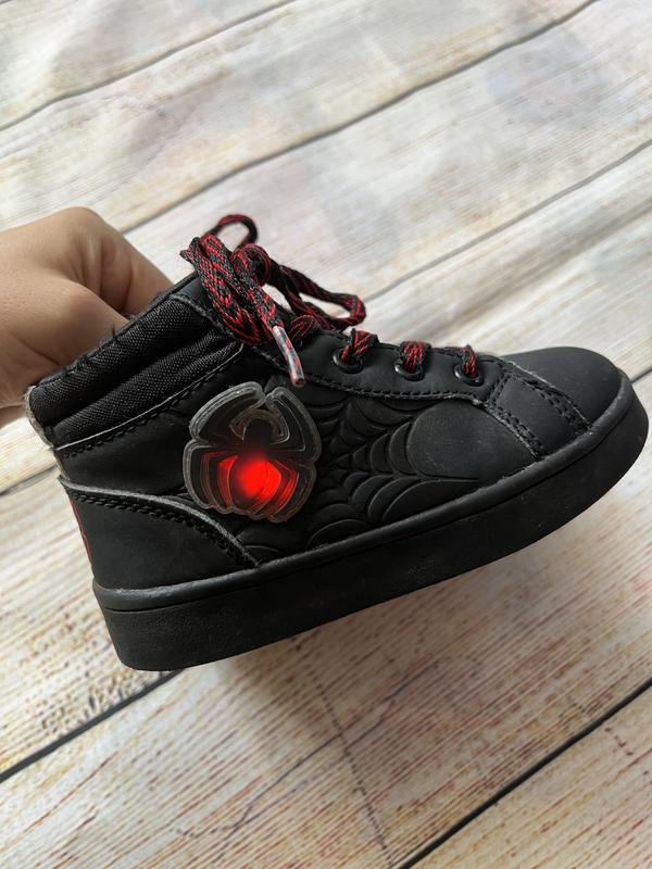Дитячі черевики людина-павук/spiderman з підсвіткою в хорошому стані. 25 розмір, устілка 15 см. Підійдуть на осінь та весну. Нюанси вказані на 2-х останніх фото, в ціні враховано. Переходьте та підписуйтесь на сторінку, ще є дитячі речі за доступними цінами🧸 Підписникам знижка 5%😉